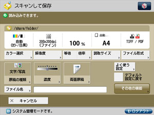 (設定/登録)→[ファンクション設定]→[共通]→[ファイル生成]→[PDFをPDF/A準拠にする]を押します。