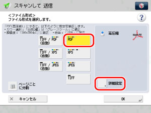 [詳細設定]が表示されていない場合は、<ファイル形式>の画面で[OCR(文字認識)]→[OK]を押し、手順12へ進みます。