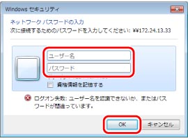 ログイン画面が表示された場合は、ユーザー名とパスワードを入力したあと、[OK]を押します。