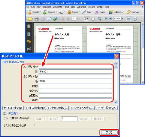 [新しいアドレス帳]ダイアログボックスにサーチャブルPDFから必要な情報をコピー&ペーストして、アドレス帳を作成します。
