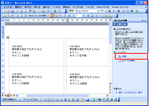 [差し込み印刷の完了]で[印刷]をクリックします。