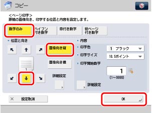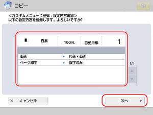 片面原稿を用紙の両面にページ番号を付けてコピーする設定の登録