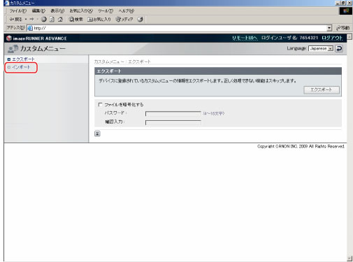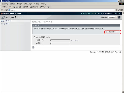 たとえば、本体のIPアドレスが「192.168.11.55」の場合は、「http://192.168.11.55:8000/custommenu」と入力します。