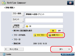 Workflow Editorで作成した共有フローをもとに、Workflow Composerでマイフローを作成することができます。