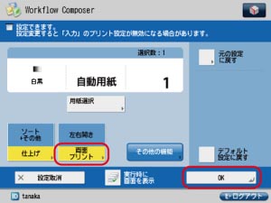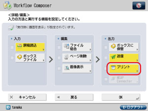 [フロー名称]を押して、フロー名称を「原稿縮小+送信+プリント」に変更します。