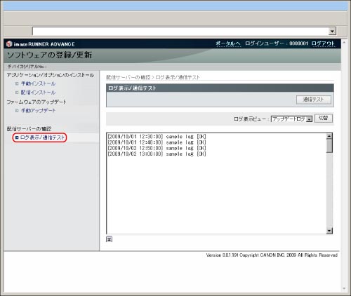 [ソフトウェアの管理設定]→[ログ表示の選択]→[アップデートログの表示]を押す