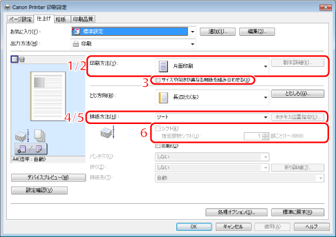 用紙サイズ/向きが異なるページが混在する場合に、とじ方向をそろえます。