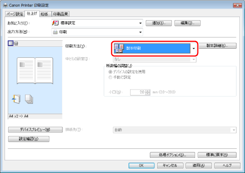 中とじ設定の詳細および[製本詳細]ダイアログボックスの各設定項目の詳細については、ヘルプを参照してください。(→「ヘルプを表示する」)