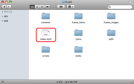 プリンタードライバー名のフォルダーで、[Documents]→[Guide]→[index.html]をダブルクリックします。