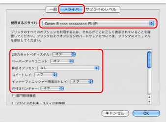 プリンターが双方向通信で接続されている場合、この手順による設定は無効となります。「プリンター情報を確認する」の手順で、オプションを自動設定してください。