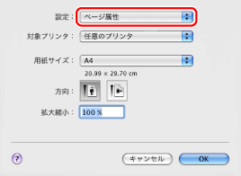 Mac OS X 10.5.xの場合、アプリケーションソフトウェアによっては、[ページ設定]ダイアログは表示されません。