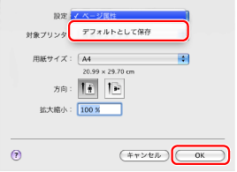 [設定]から[デフォルトとして保存]を選択→[OK]をクリック