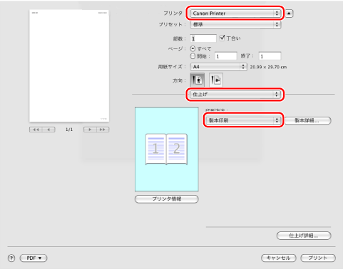 製本印刷時は、[仕上げ]パネルの[排紙方法]を指定して出力はできません。