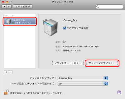 ファクスが双方向通信で接続されている場合、この手順による設定は無効となります。「ファクス情報を確認する」の手順で、オプションを自動設定してください。