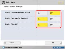 on the top right of the screen, the following screen is displayed. Select settings from the displayed screen and set the display of the Main Menu screen.