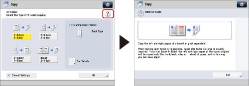 Any time appears on the touch panel display, you can check a detailed explanation of the function and its settings.
