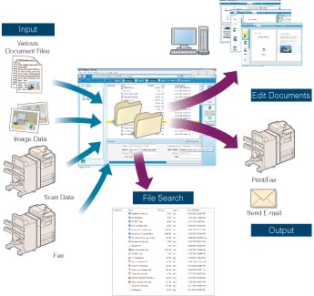 imageRUNNER ADVANCE Desktop, a core software program among the component products of imageRUNNER ADVANCE Essentials, is an integrated document management application that is capable of importing, editing, printing, sending, storing and managing documents.