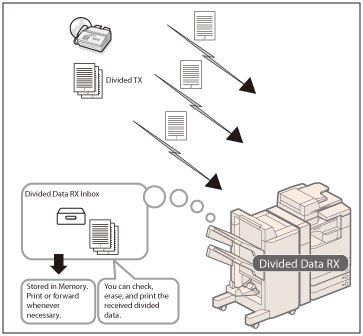 Press to check the status of divided data, and the remaining capacity of the Divided Data RX Inbox.