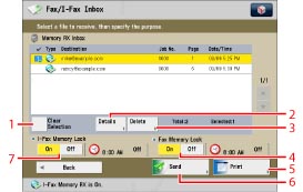 Press to turn the I-Fax Memory Lock mode 'On' or 'Off' for the Memory RX Inbox.