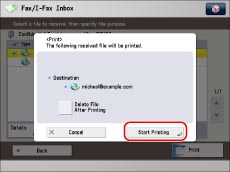 If you want to automatically delete the selected file after it is printed, press [Delete File After Printing].