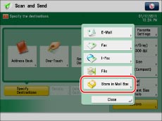 Documents that are scanned using a specified scan size (Custom, Long Original, or Free Size), cannot be stored in a mail box.