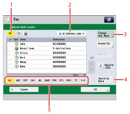 If you select [All], destinations registered in one-touch buttons also appear. However, you cannot delete destinations registered in one-touch buttons. For instructions on deleting one-touch buttons, see "Storing/Editing/Deleting One-Touch Buttons."