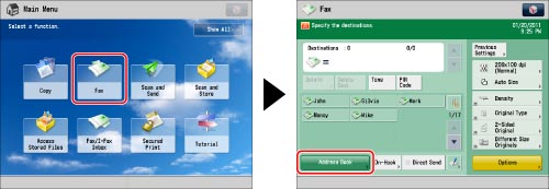 If you want to select multiple destinations, select the destination Address List → press [OK]. If you set [Manage Address Book Access Numbers] to 'On', press [Access No.].