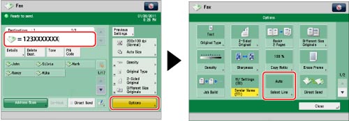 If you select [Auto], the telephone number and name that are registered for the line used for sending are printed on the recipient's paper. They may also appear on the touch panel display of the receiving party's machine.