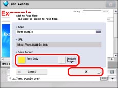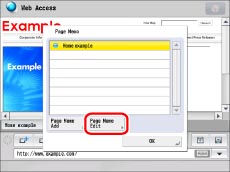 You can change the name and URL. If you save the URL, the contents of the saved screen do not change. The screen currently displayed is saved as a Page Memo.