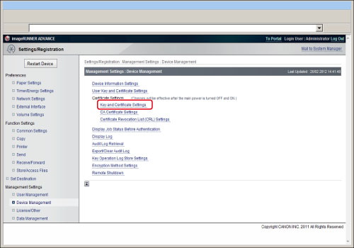 Click [Settings/Registration] → [Device Management] for <Management Settings>.