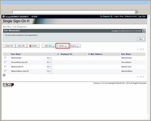 Imported user data is registered or overwritten as General User.