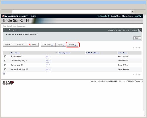 It is recommended that you export the registered/edited user data to make a backup copy.