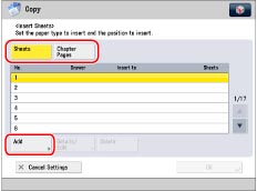 You can confirm/change the settings for sheet insertions and chapter pages by pressing [Details/Edit] after selecting the settings.