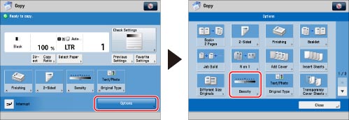 If you change the density in [Options], adjusting the density during copying may not have any effect on the output.
