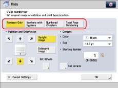 If you use [Page Numbering] with [Add Cover] or [Insert Sheets], numbers will not be printed on the inserted pages.