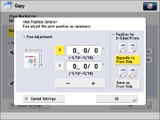 If you set any two of [Copy Set Numbering], [Watermark], or [Print Date] to print in the same position, a confirmation message appears when you press