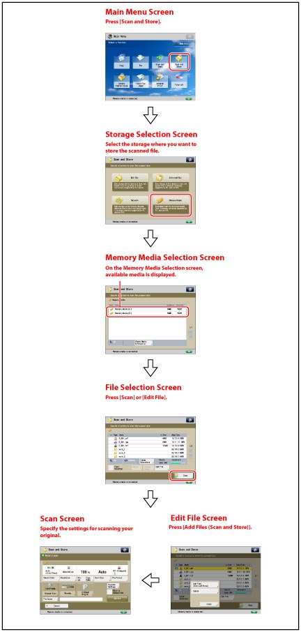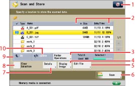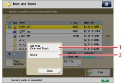 For instructions on arranging folders, checking detailed information for the file, and editing/deleting files, see "Access Stored Files."