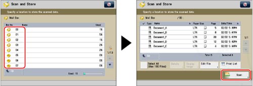 If you want to select a mail box and scan a colour image to it, it is necessary to expand the memory capacity of the machine with the Additional Memory Type A (512MB).