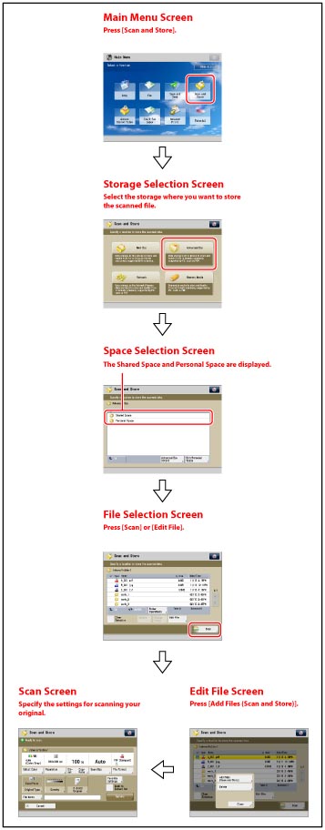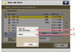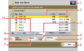 For instructions on arranging folders, checking detailed information for the file, and editing/deleting files, see "Access Stored Files."