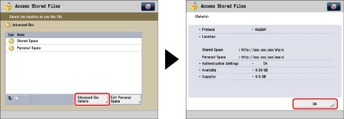 Press [Access Stored Files] → [Advanced Box].