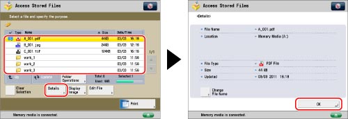 You can check the detailed information (file name, location, and date modified) for files in memory media.
