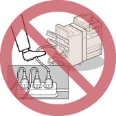 If excessive stress is applied to the connection part of the power cord, it may damage the power cord or the wires inside the machine may disconnect. This could result in a fire. Avoid the following situations: