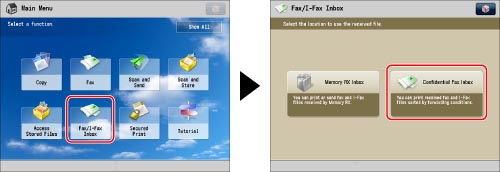 Press [Fax/I-Fax Inbox] → [Confidential Fax Inbox].