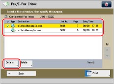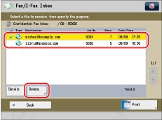 Checking the Detailed Information for/Deleting a File in a Confidential Fax Inbox