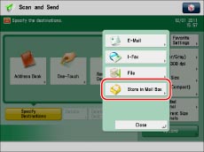 Documents that are scanned using a specified scan size (Custom, Long Original, or Free Size), cannot be stored in a mail box.