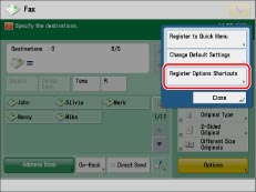 Press [Register Options Shortcuts].