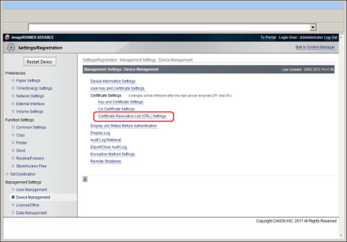 Click [Certificate Revocation List (CRL) Settings].