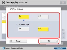 Press [LPD Print Settings] for [TCP/IP Settings] → specify the following items → press [OK].