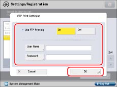 Press [Use FTP PASV Mode] for [TCP/IP Settings] → specify the following items → press [OK].