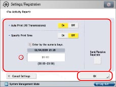 If [Display Log] in [Management Settings] (Settings/Registration) is set to 'Off', [Fax Activity Report] is not displayed.